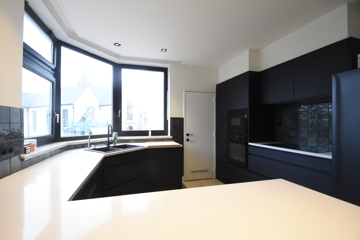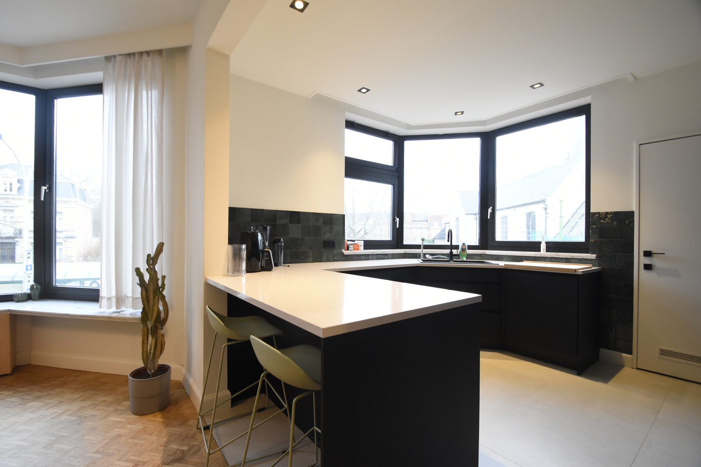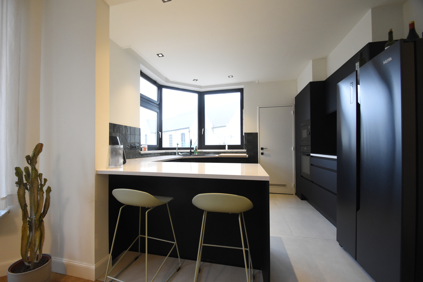 De vernieuwde, open keuken sluit perfect aan op de ruime living en is volledig uitgerust.
