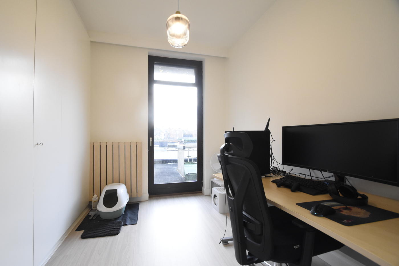 De losstaande Amerikaanse koelkast blijft bovendien mee in het appartement, wat een mooie extra troef is voor de nieuwe eigenaar. Aansluitend aan de keuken nog een kleine berging.