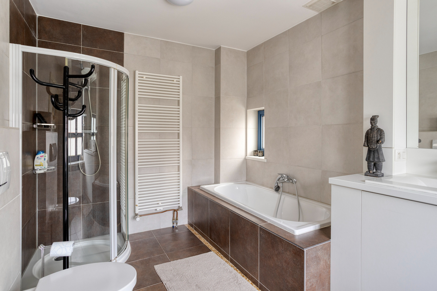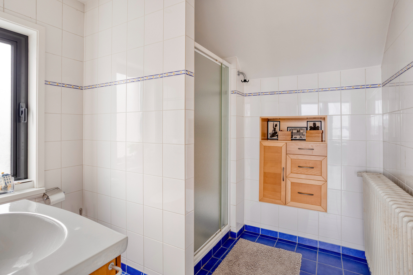 Ook hier is een tweede badkamer met lavabomeubel, douche en toilet aanwezig.