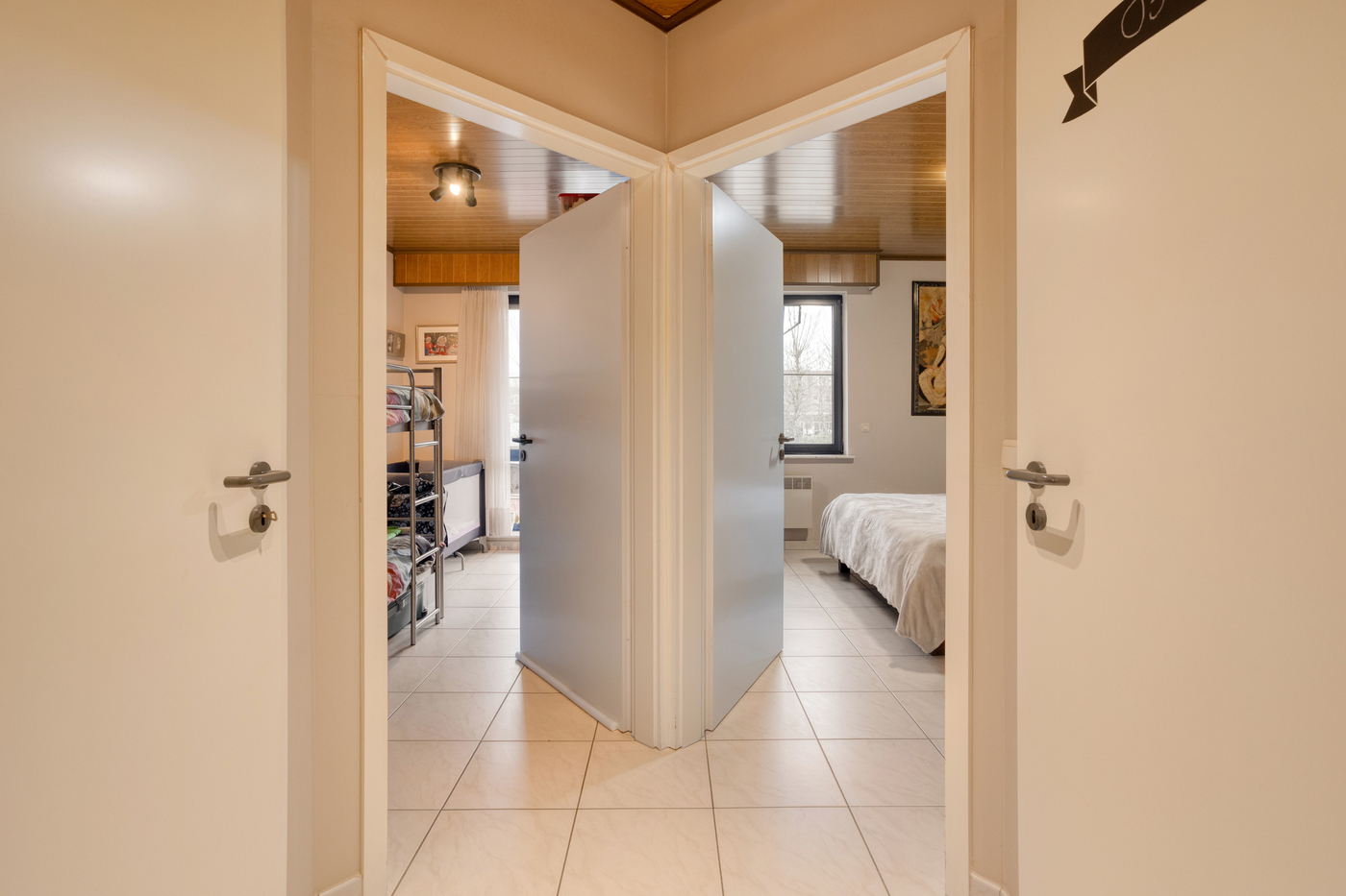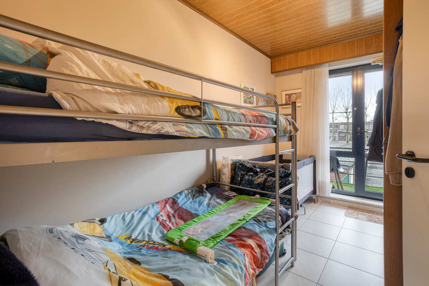 Twee slaapkamers waarvan één toegang biedt tot het terras met zonnescherm.