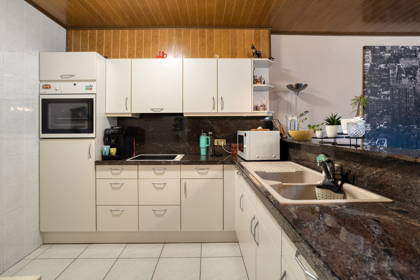 Open ingerichte keuken , aansluitend met een berging.