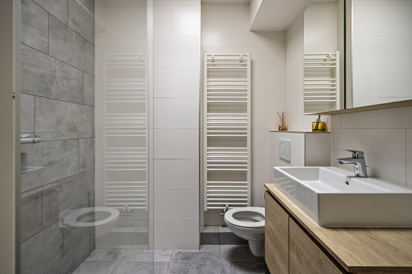 De tweede verdieping omvat twee volledig gerenoveerde appartementen: