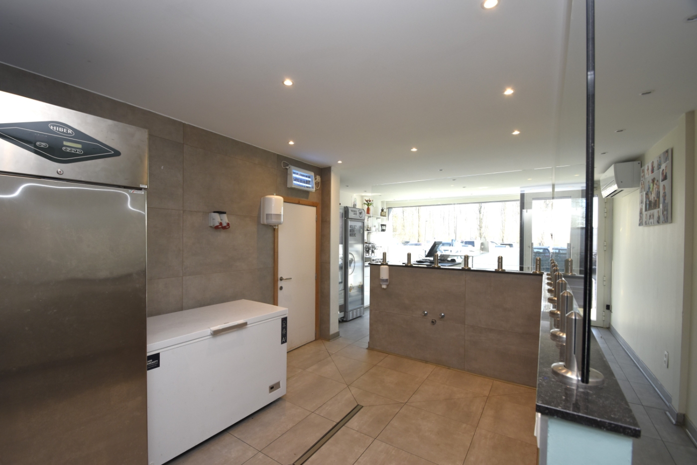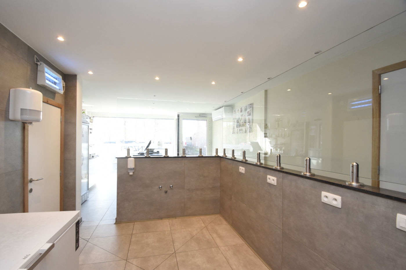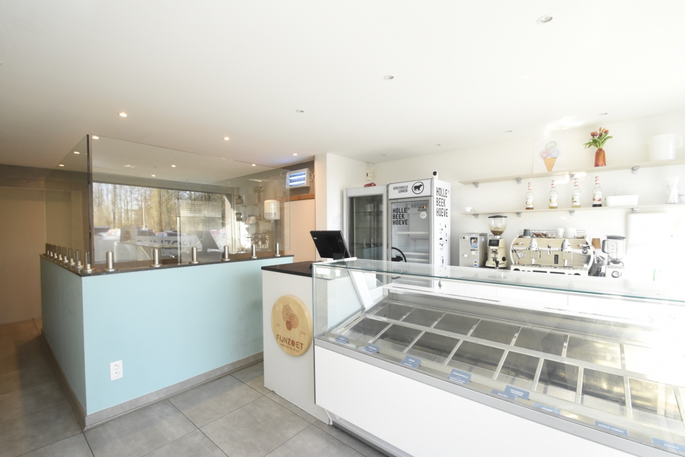 Aan de voorzijde van het gebouw bevindt zich de handelsruimte, waar momenteel het ijssalon is gevestigd.