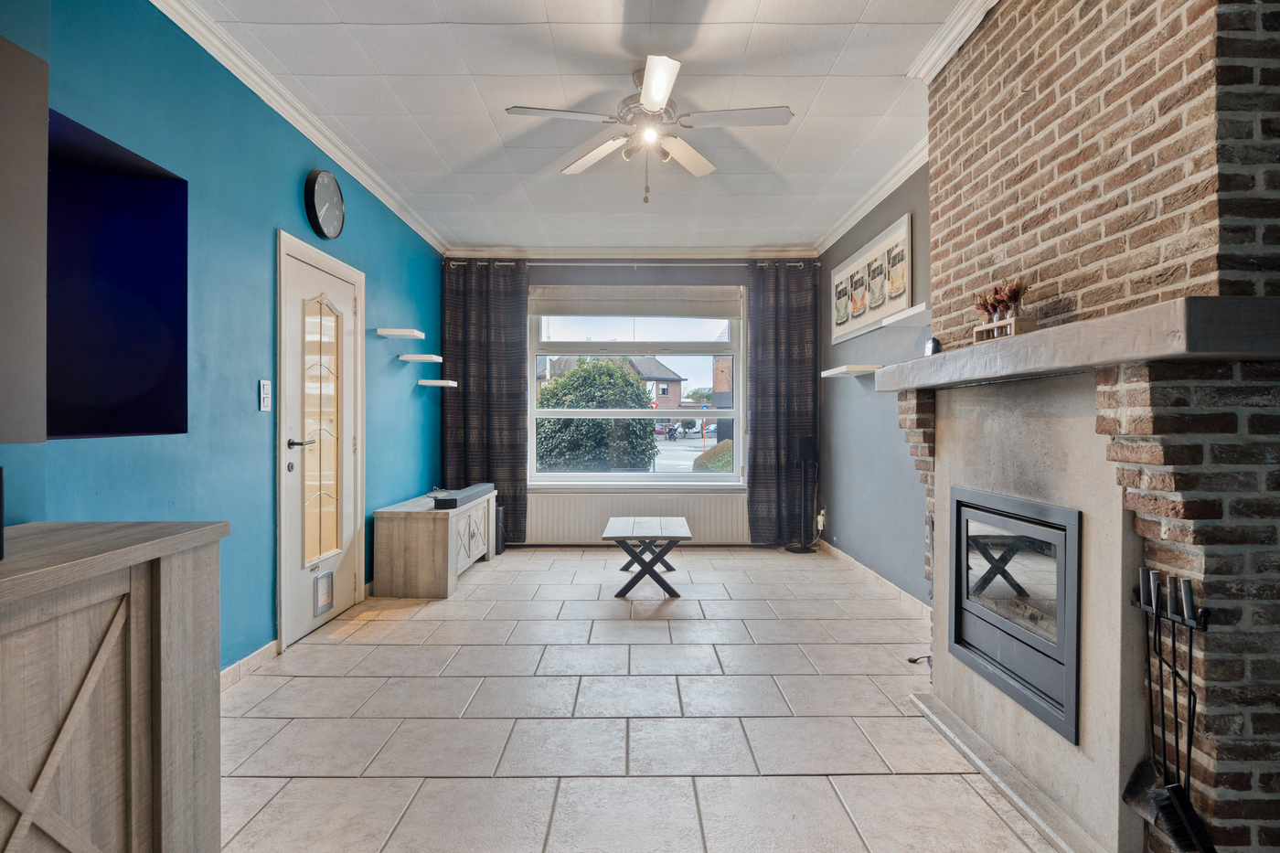 We betreden de woning via de inkomhal, die toegang biedt tot de gezellige leefruimte met inbouwhaard.