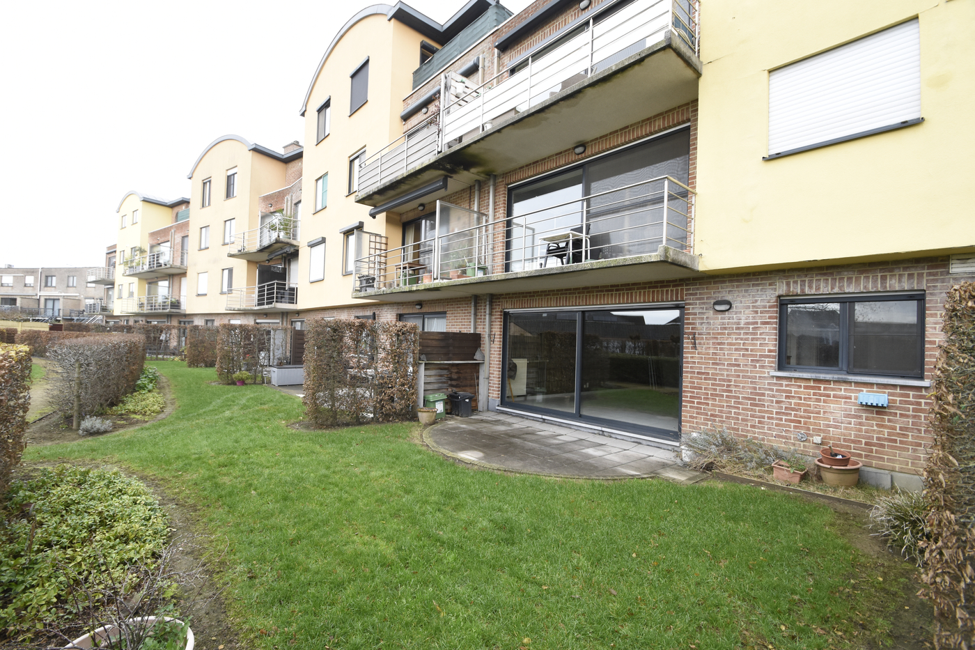 Gelegen in een rustige straat, tegenover een groene oase vinden we dit gelijkvloers appartement.