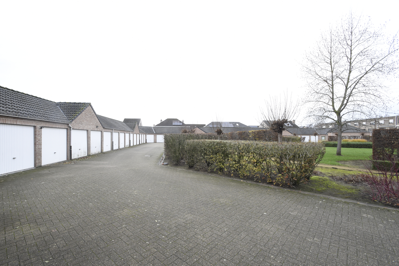 Garage met kantelpoort. Gemeenschappelijke fietsenberging.