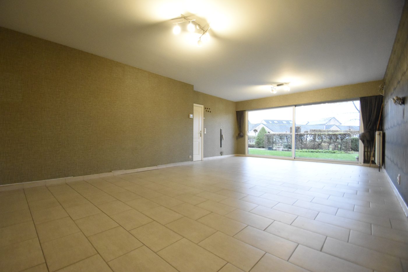 Een ruime woonkamer met veel lichtinval.