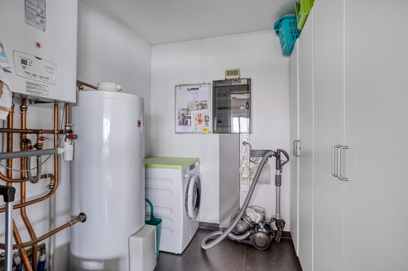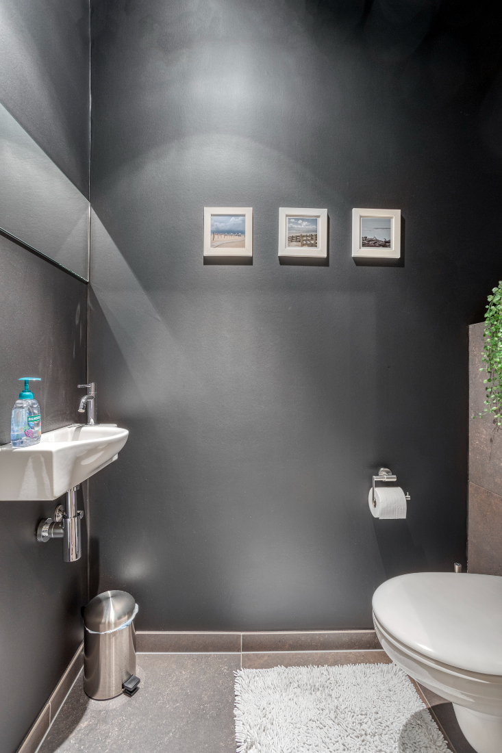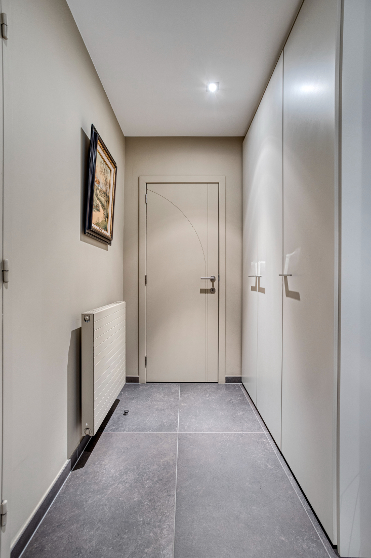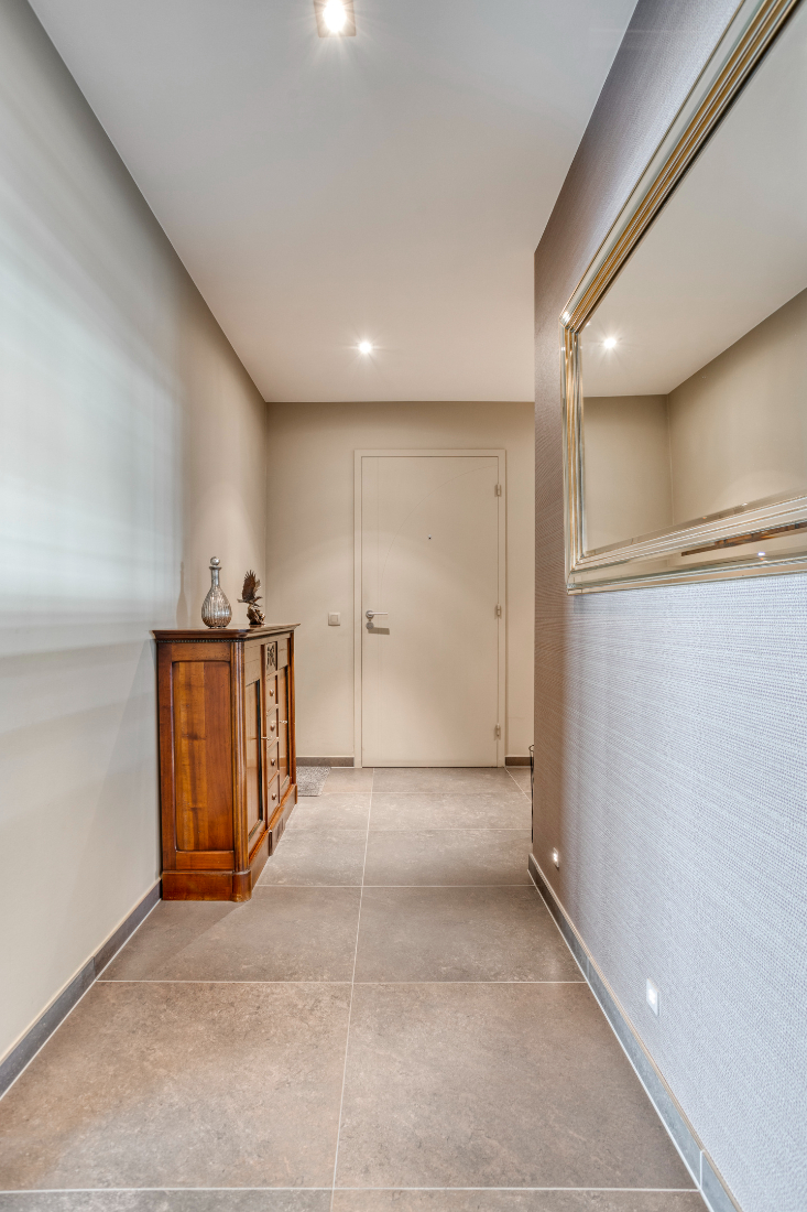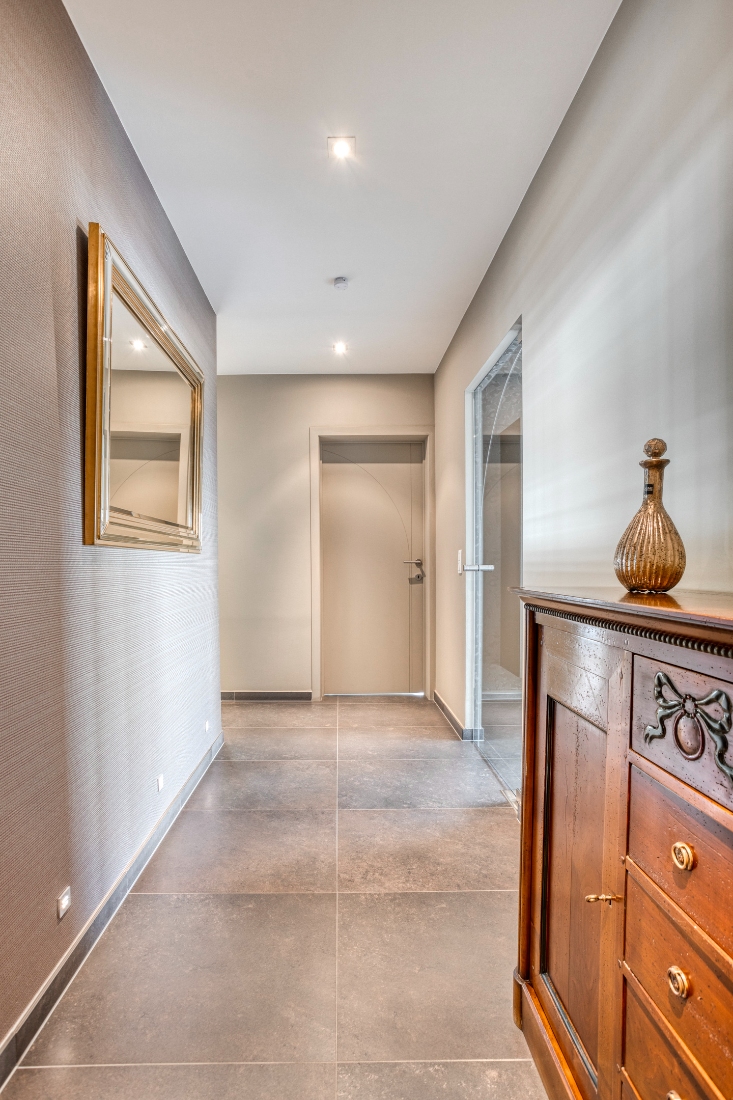 Bij binnenkomst verwelkomt de ruime inkomhal je met plafondhoge ingemaakte vestiairekasten, gastentoilet en sfeervolle nachthalverlichting.