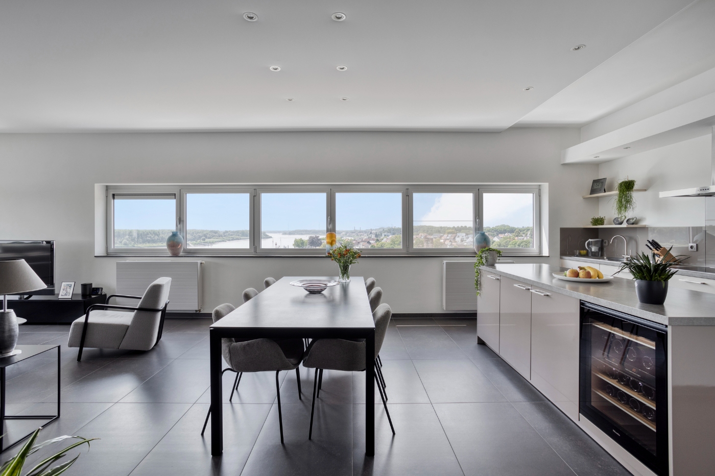 Automatische screens zorgen over het hele appartement voor comfort en privacy op maat.