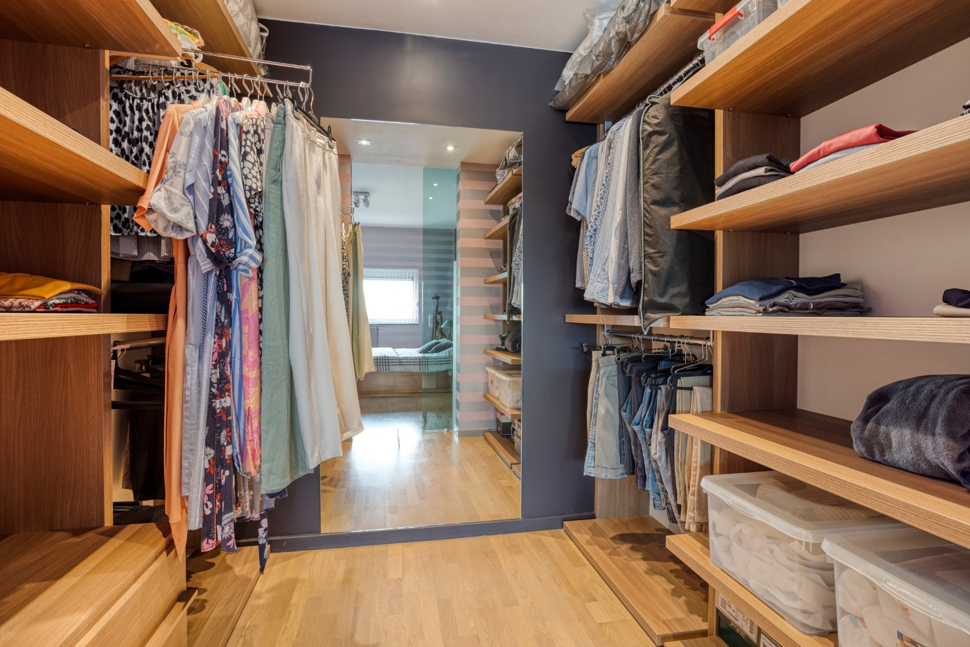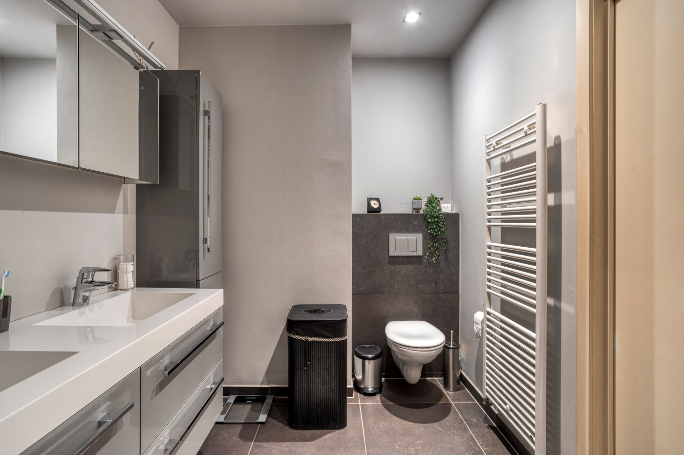 Het appartement beschikt over drie volwaardige slaapkamers, allen voorzien van parket en ingemaakte kasten. De master bedroom geniet bovendien van een ruime walk-in dressing.