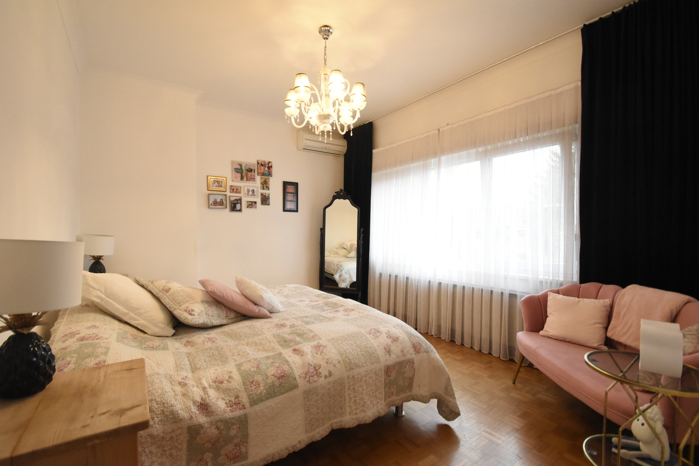 Bij het binnenkomen word je meteen gecharmeerd door de prachtige dambordvloer, de originele houten trap en de stijlvolle binnendeuren met glas-in-loodramen — echte authentieke elementen.