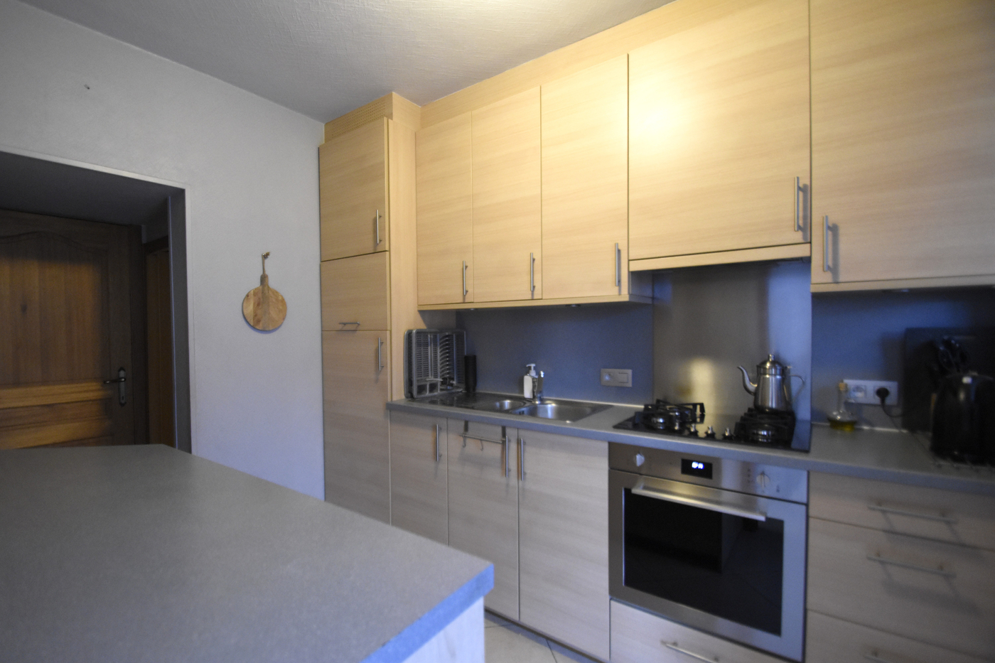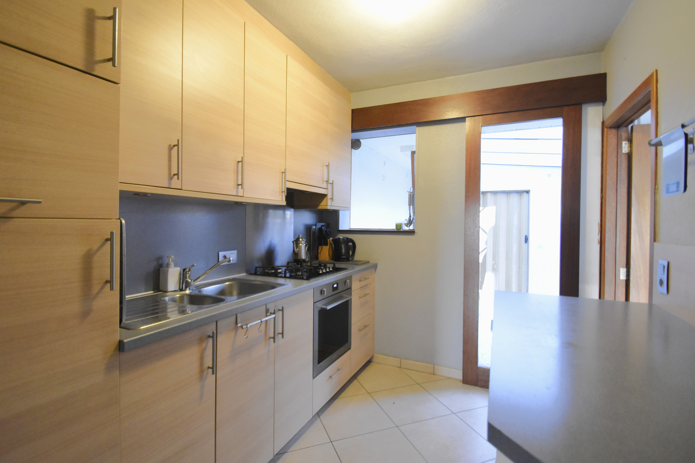 Via de inkomhal kom je de woning binnen, verder de gezellige leefruimte, die aansluit op de vernieuwde keuken.